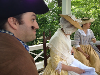 I got to wear my new 1940s hat, shoes, and purse! All three of these I picked up at the 1920s Roaring Lawn party. The shoes were made by the Red Cross Shoe Company and are very comfortable. The dress some of you may remember from last summer when I wore it to the Market Maddness event in town. It's a little faded in spots so don't look too closely. Despite it's little flaws the dress is one of my favorites.